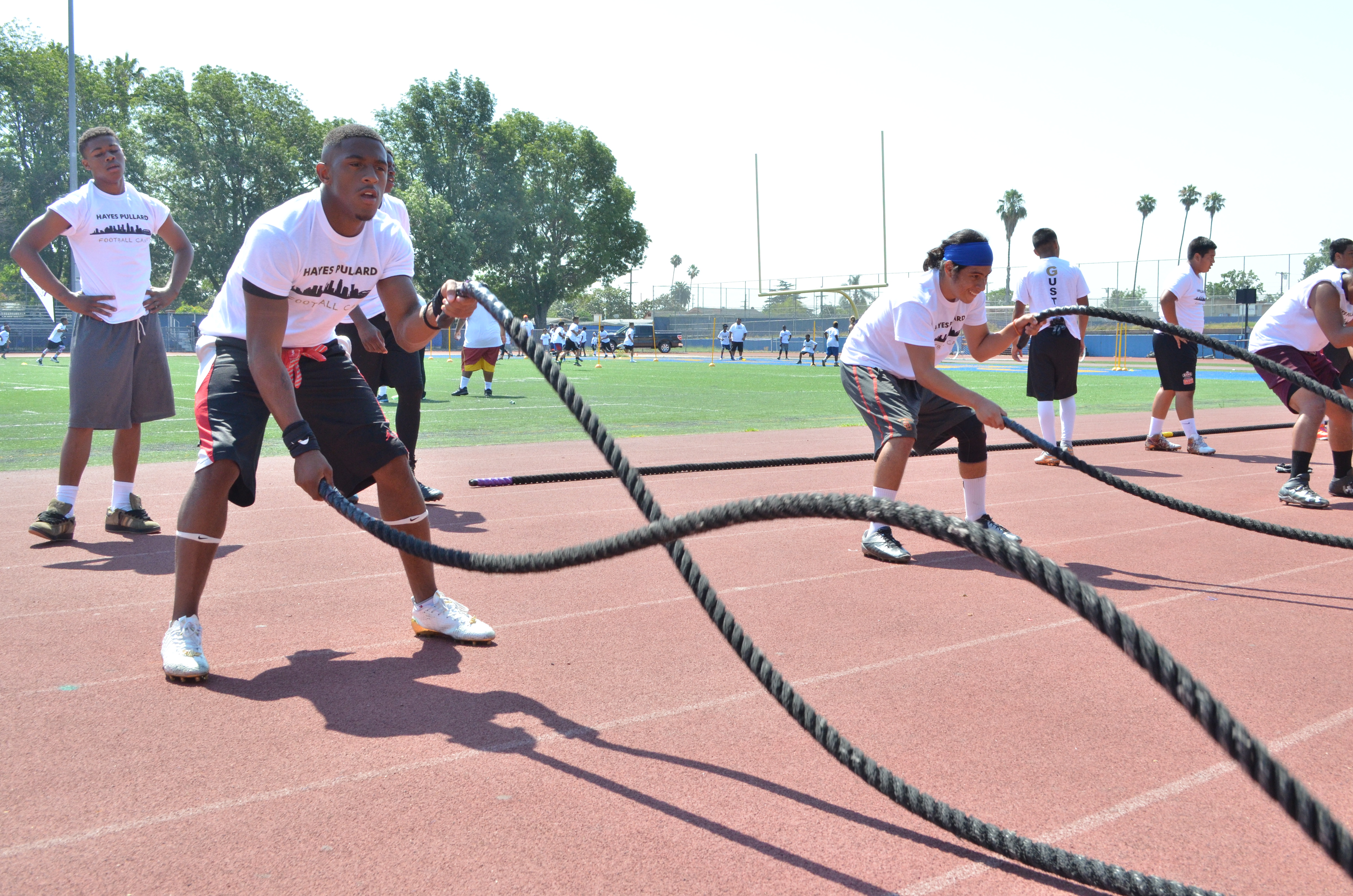 Youth participated in power rope exercises (Amanda Scurlock/L.A. Sentinel)Jacksonville Jaguars linebacker Hayes Pullard hosted his third annual football camp at Crenshaw High School on Saturday, July 15. Athletes throughout Los Angeles were able to learn from current NFL and college players.